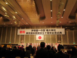 丙午一白水星中宮年を迎えるにあたって、令和8年1月18日明治記念館において開かれた椿大神社新年御祈祷神符頒布祭及び東京講本部開設五十周年記念式典に、代表として出席してきました。山本宮司様の「強烈なエネルギーに照らされる本年は、分水嶺となる」との言葉に、気持ちが引き締まる思いでした。
